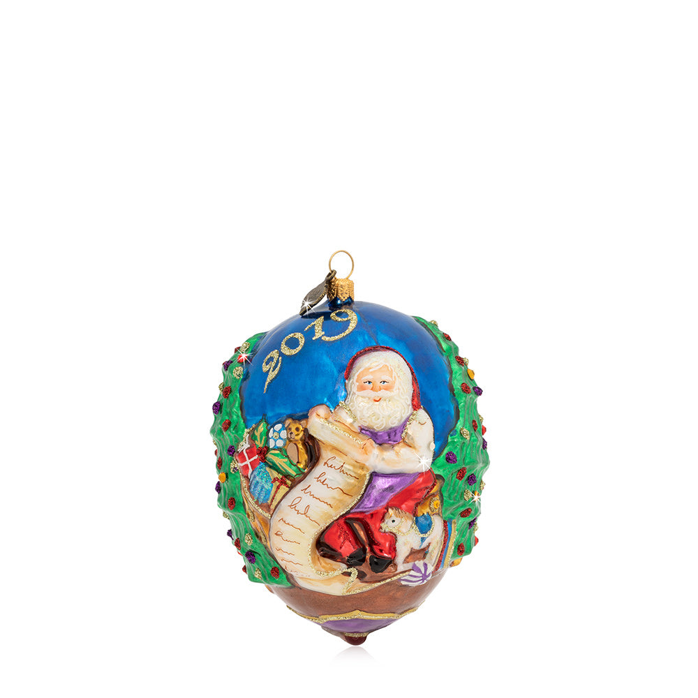 Santa is checking his list and putting the final touches on the gifts he will be delivering this 2019 Christmas Holiday. Our first dated 2019 Santa ornament was sculpted first in clay and then mouth-blown in glass by old-world glass artisans in Poland. Hand-painted with jewel tone enamels, glitter and hand-set with sparkling Swarovski® crystals.