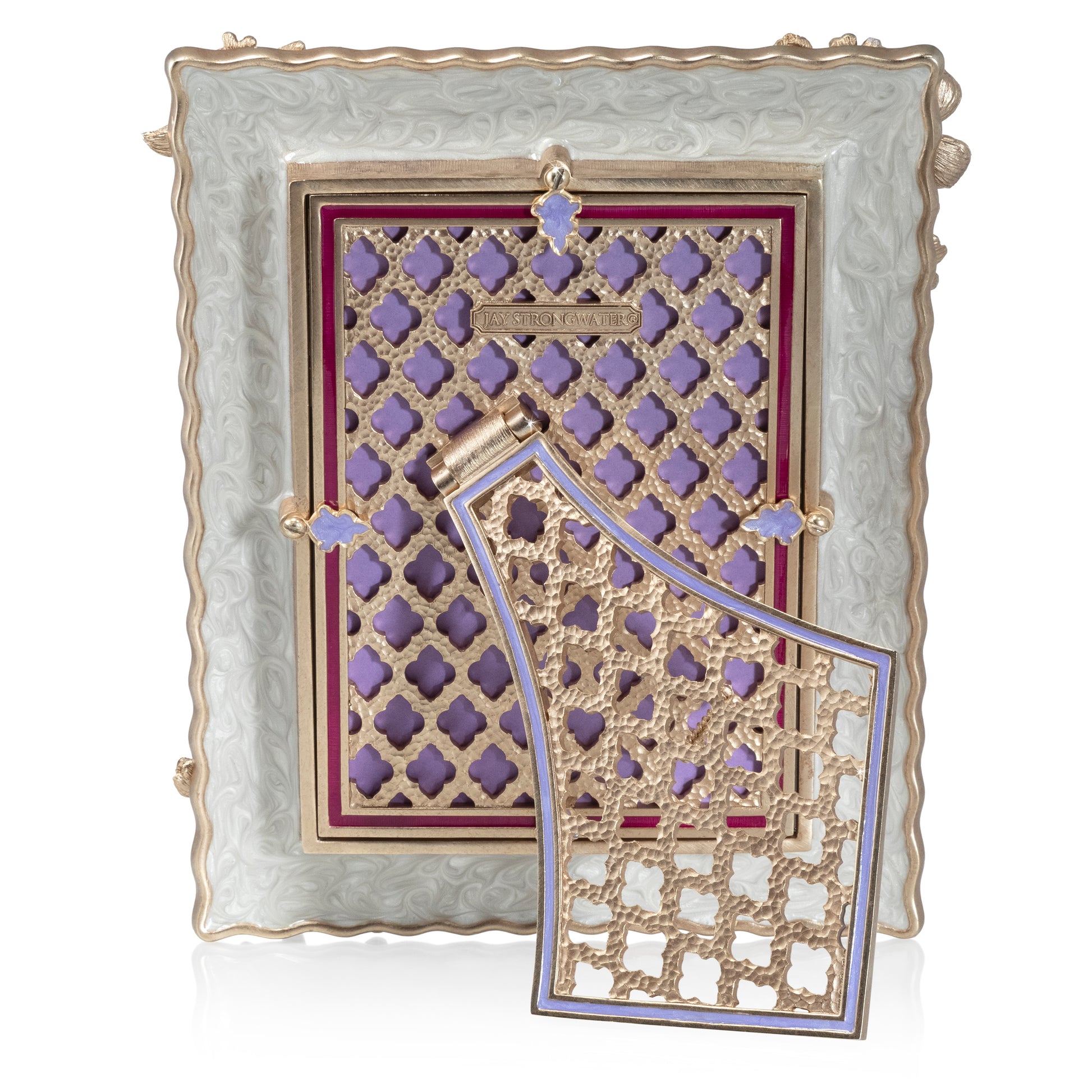 Invite the intoxicating beauty of springtime into your home with this exquisite enamel frame. Covered in a swath of bright spring blooms, this hand-painted piece is accented in 14K gold and sparkles with over Swarovski® 300 crystals.
