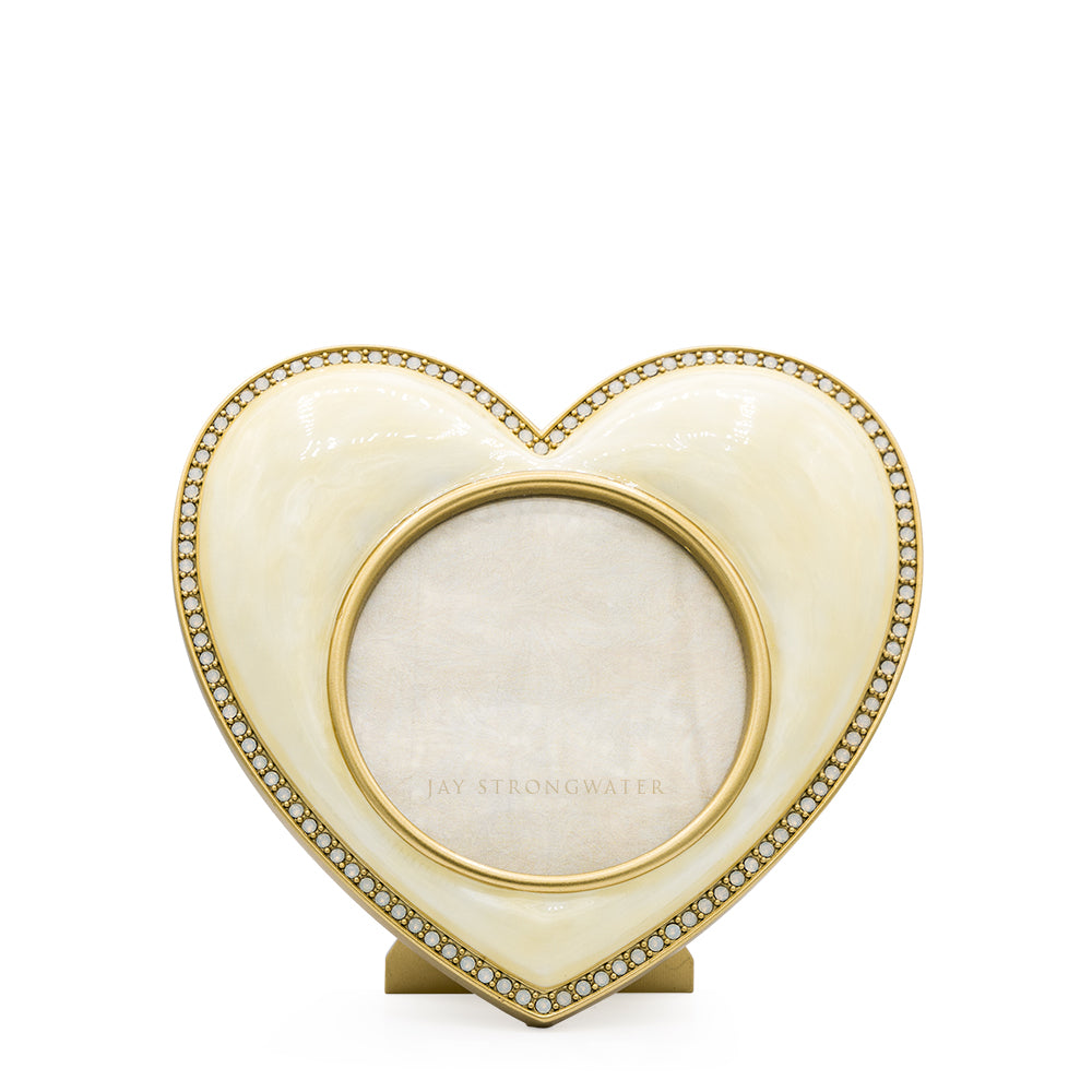 Creamy white enamel shines over the 14K-gold-finished Chantal Heart Frame, edged in Swarovski® crystals. A truly adorable gift for someone you love. One of our favorites for wedding gifting!