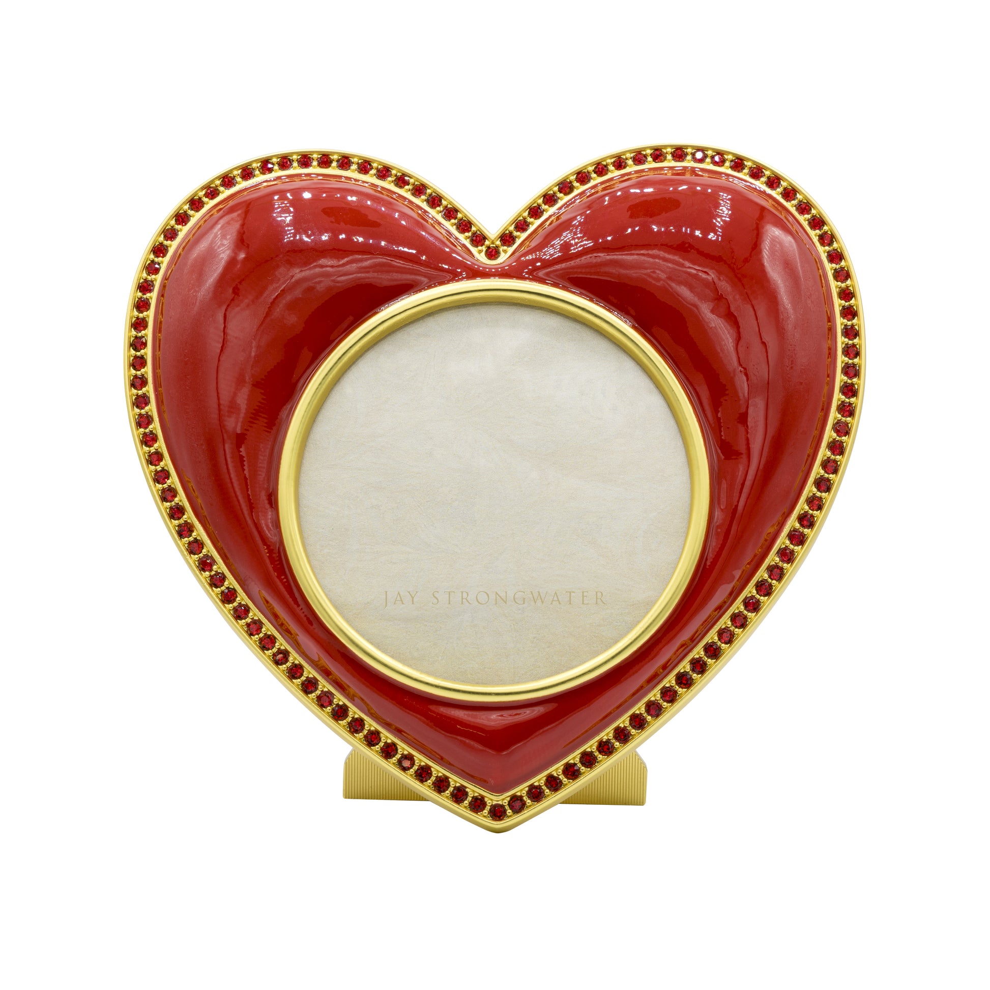 Place the object of your affection in the sweetly shaped Chantal Heart Frame, finished in gold tones, painted in ruby red enamels, and hand-set with ruby-colored European crystals.