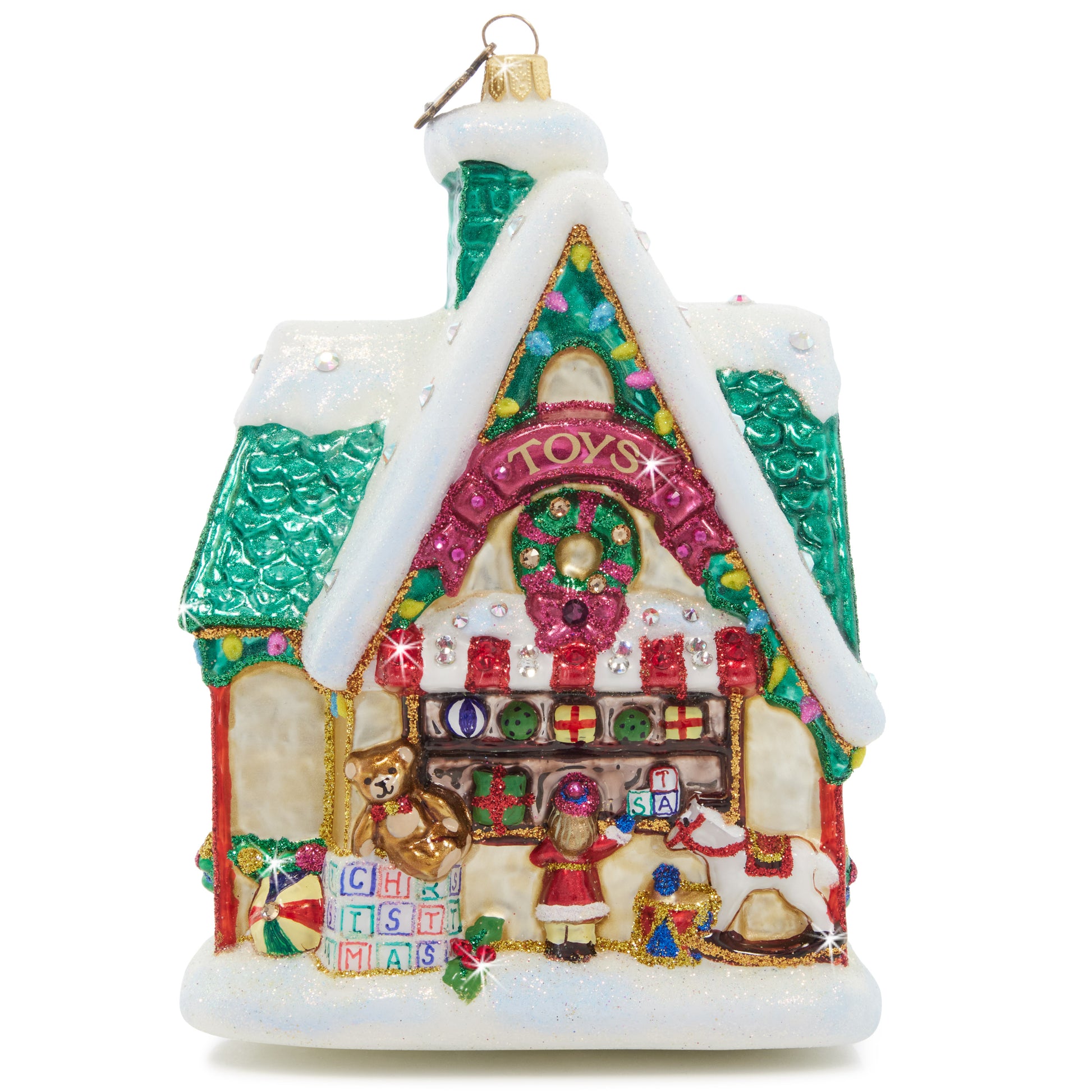 Immerse yourself in the wonder of the season with the Christmas Toy Shop Ornament. A true masterpiece of artistry, this enchanting ornament embodies the spirit of childhood nostalgia and holiday joy. Handcrafted with meticulous detail, it showcases a whimsical toy shop scene, brimming with delightful vibrant colors, and a touch of sparkle, making it a captivating addition to your tree. Elevate your holiday décor with the timeless charm of Jay Strongwater and relive the magic of toys and Christmas.