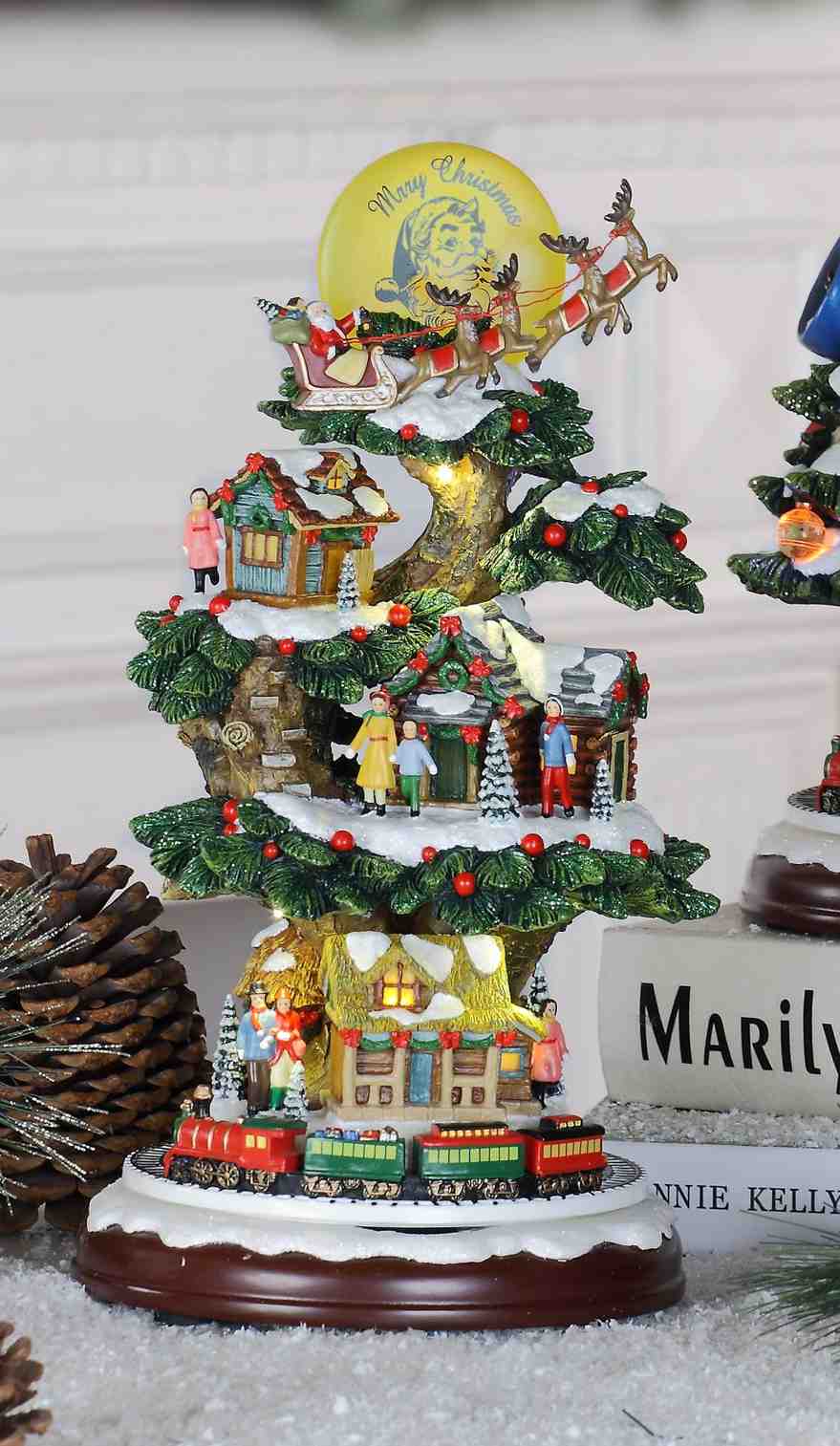 This is a beautiful tree house for your Christmas decoration. A detail painting throughout entire pieces. Each houses are light up to warm up the season. People are gathering with joy and love.
