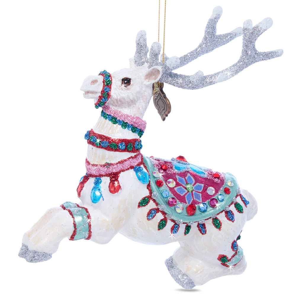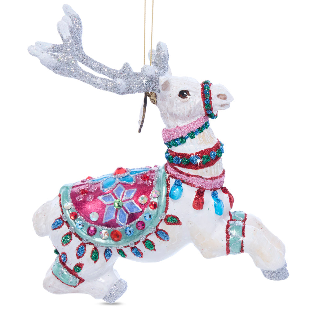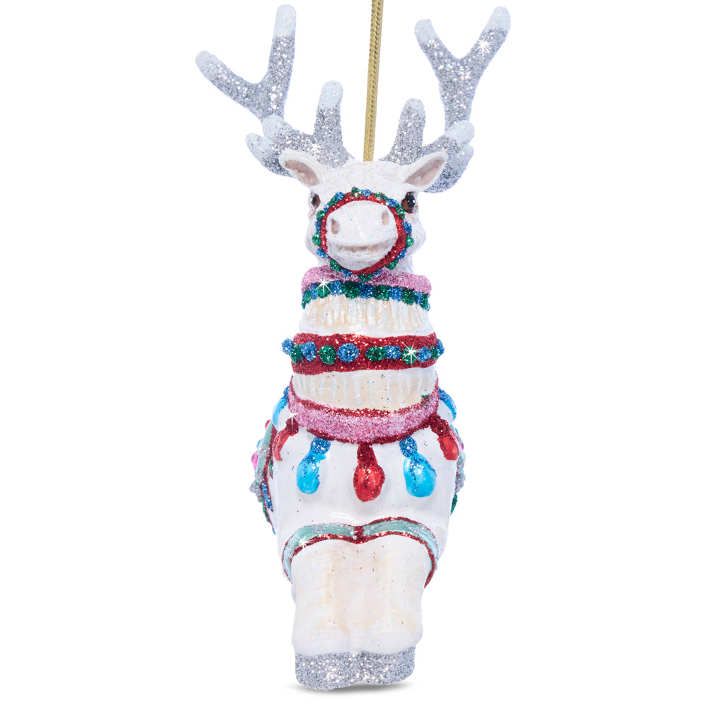 Originally launched in 2021, we are thrilled to re-introduce the Cupid Glass Ornament so that you can complete your stunning set of all nine reindeer! The Cupid Glass ornament is a stunning piece of holiday decor that captures the grace and beauty of one of Santa's reindeer. Crafted with exquisite detail and precision, this glass ornament adds a touch of elegance to any Christmas tree. Whether hung delicately on a branch or displayed as part of a festive centerpiece, the cupid ornament brings a sense of magic and wonder to your holiday celebrations. Made with care and artistry, this ornament from Poland is sure to become a cherished part of your seasonal traditions for years to come.