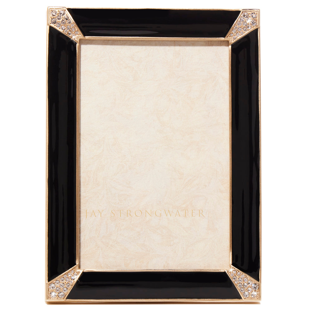 Introducing the Lavinia in Frame Black Onyx, a classic spin on modern luxury. This 4x6 frame embodies timeless elegance. Each detail is hand-enameled with precision, creating a rich depth that captivates the eye. Adorned with opulent European crystals, the corners shine with a sophisticated allure. Crafted from premium materials including durable zinc, and finished with a 14K gold touch, this frame is not just a showcase for your memories but a symbol of refined taste. Our signature enamel back plate makes this a masterpiece from every angle.