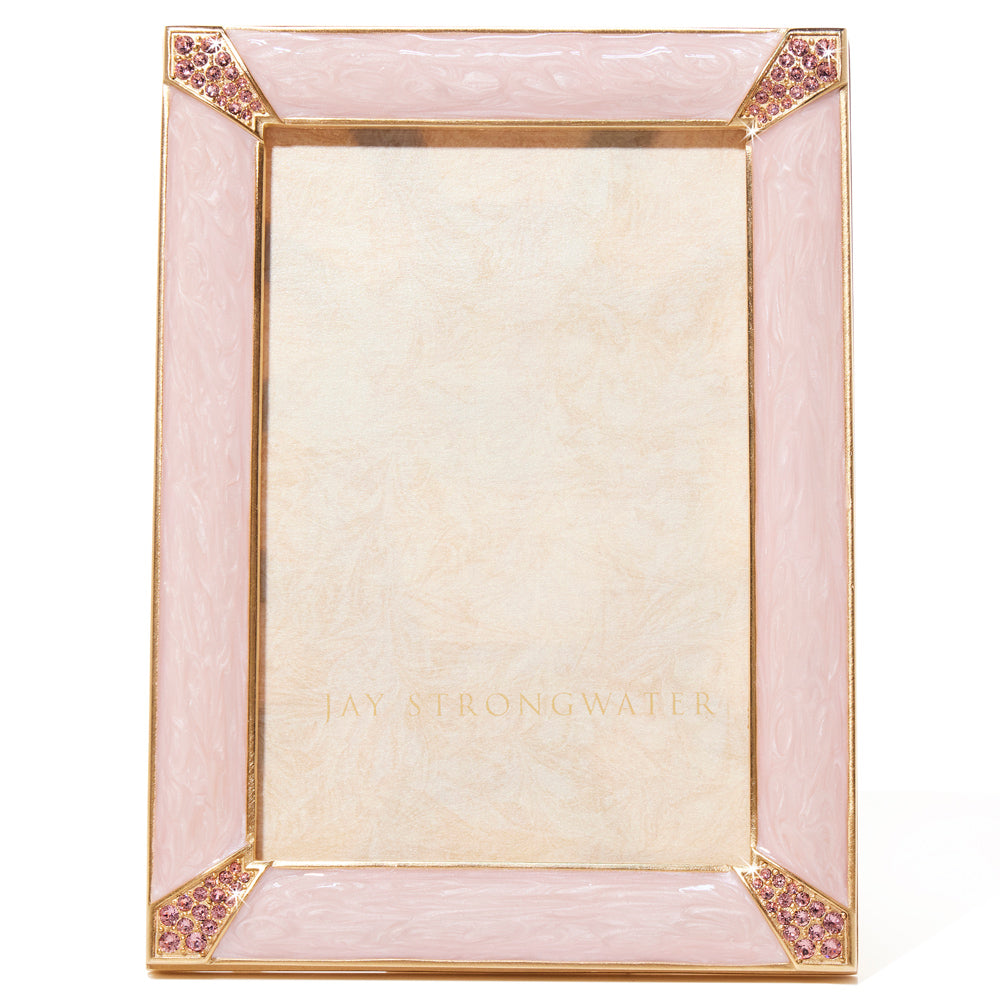 The 4x6 Lavinia Frame in Baby Pink possesses a delicate charm, making it perfect for the most beloved memories. Crafted with meticulous attention to detail, the Lavinia frame is embellished with rose European pavé crystal corners, adding a captivating sparkle. Made from premium materials, including durable zinc and elegant 14K gold, it will be enjoyed for a lifetime. Whether displayed on a mantelpiece, shelf, or bedside table, the Lavinia Frame promises to showcase your precious moments with unrivaled beauty.