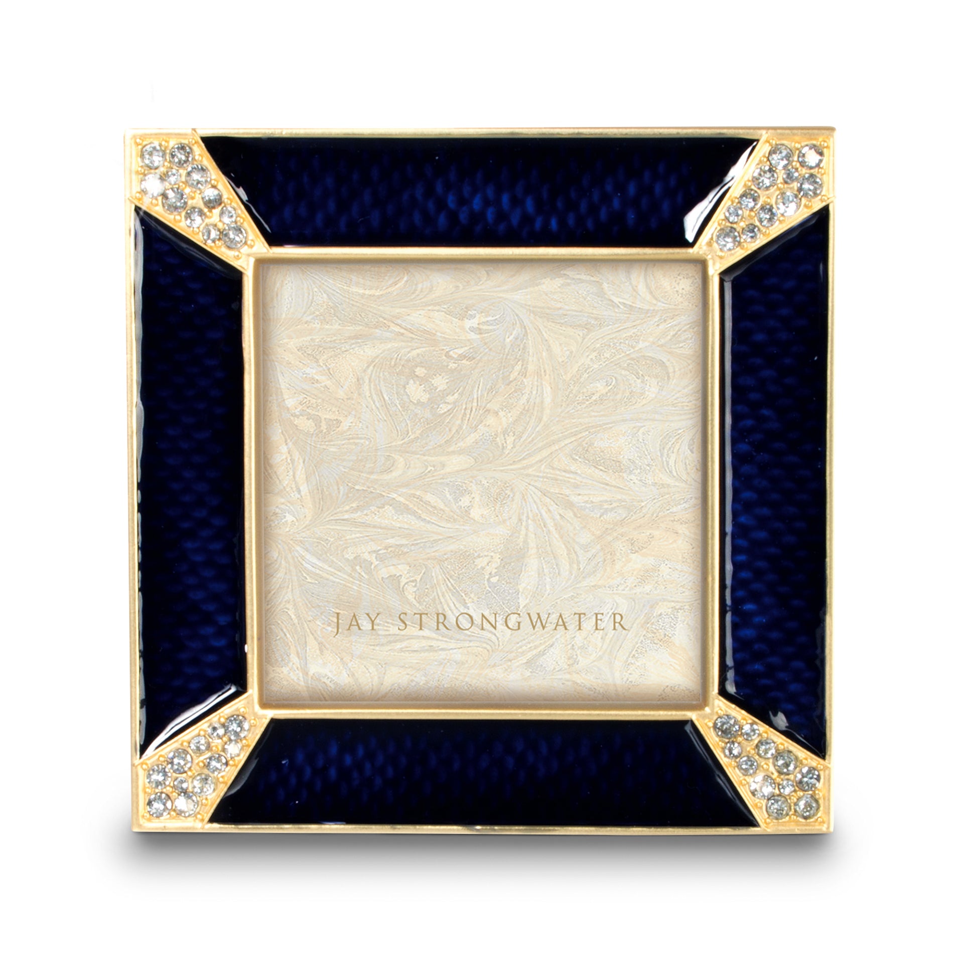Welcome a new season with this fresh palette of translucent blues mixed with white. A charming composition of metal, enamel, and crystals in delft garden hues graces the Leland Pavé Corner 2" Square Frame. The frame is adorned with sparkling Pavé crystals that add a touch of glamour and sophistication. Measuring 2 inches, this frame is perfect for displaying your cherished memories for years to come.