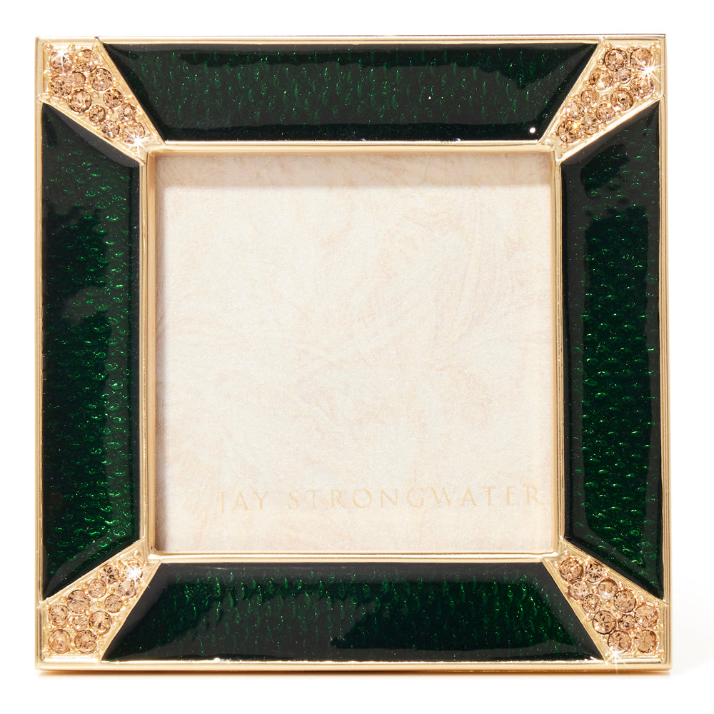 The Leland Frame exudes timeless elegance, enriching any cherished photograph it holds. Imbued with layers of rich, translucent green enamel, this handcrafted piece is cast in pewter and adorned with lustrous 14K gold plating. Each corner is lavishly embellished with pavé-set European crystals, adding a mesmerizing sparkle. The back plate, featuring our distinctive green enamel, complements the frame's beauty from every view, making it a captivating focal point in any setting.