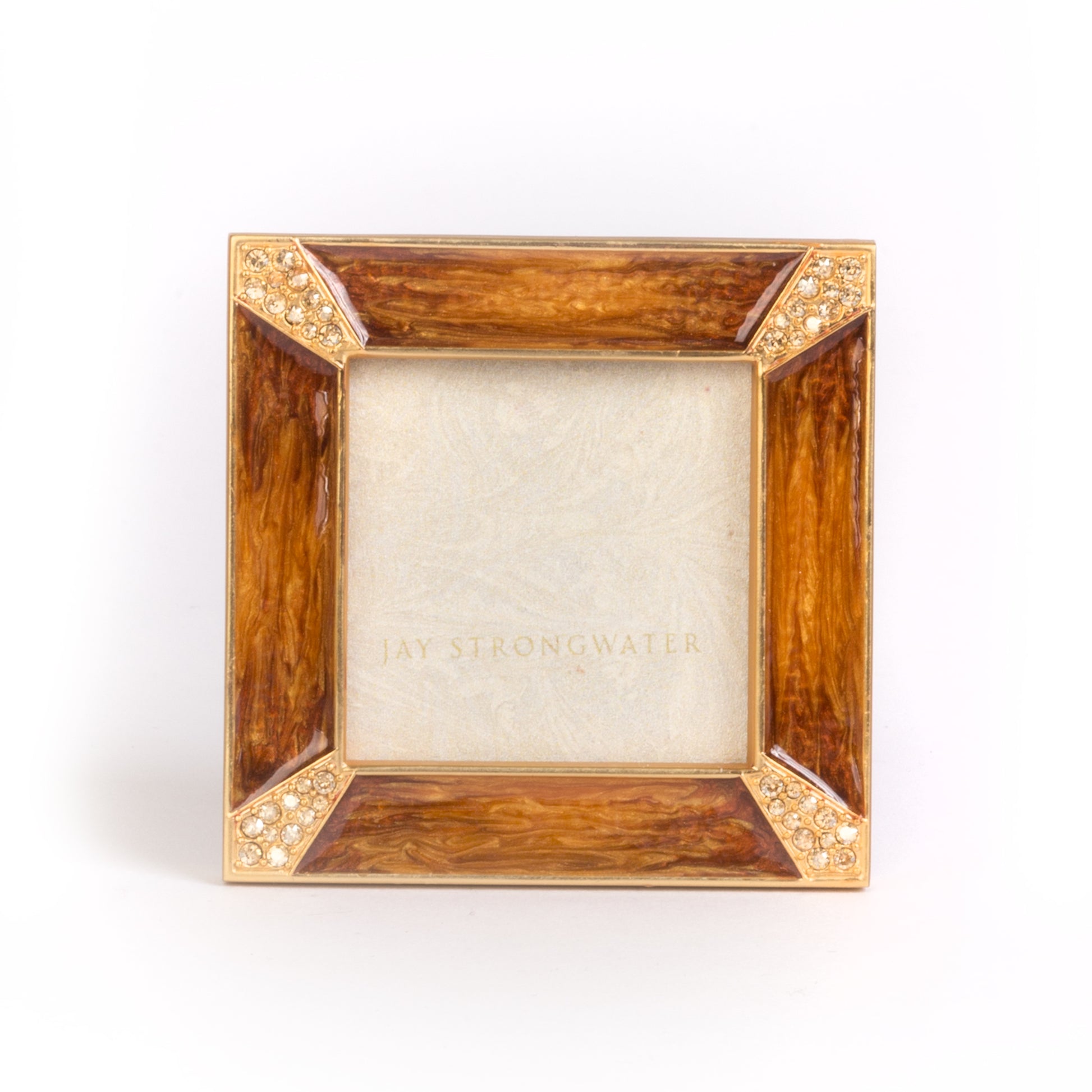 Loved ones always look that much lovelier in our Leland Pavé Corner 2" Square Frame. Forged in metals, painted by artisans with vibrant golden-topaz enamels, and sparkling with Swarovski® crystal corners, pick a bouquet of Classic frame colors for standout style.