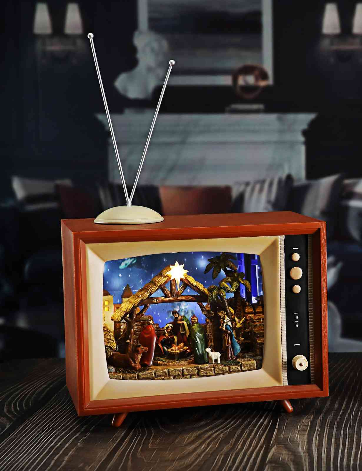 Sm. Cascading Snow Screen w/ Nativity TV